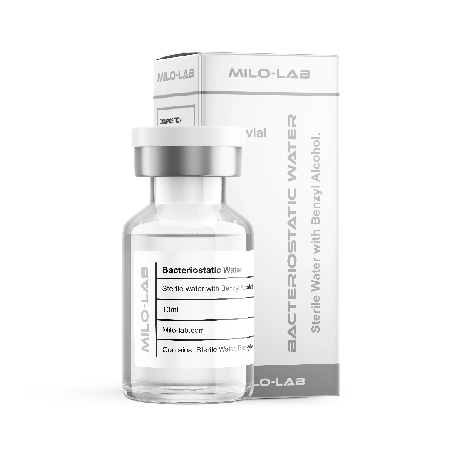 Bacteriostatic Water 10ml (BAC Water) by Milo-Lab is a sterile solution used for mixing and reconstituting peptides, hormones, and other injectable products. Formulated with 0.9% benzyl alcohol, BAC Water ensures the sterility of reconstituted solutions for extended use, making it an essential tool for safe and effective injection protocols.